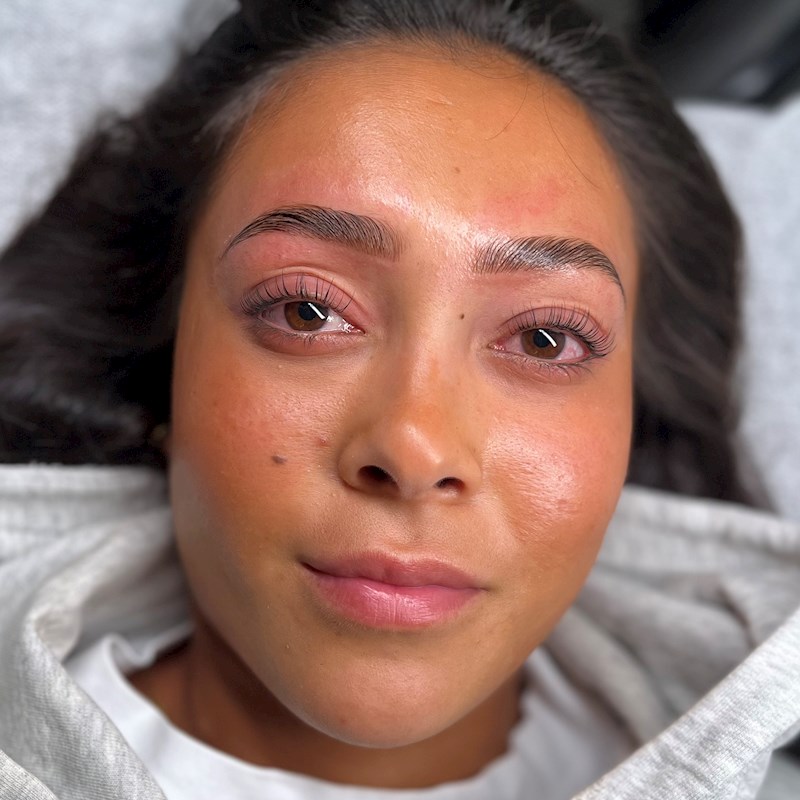 Inneholder laminerings behandling, samt form og farge. Her jobbes det med permanent, prinsippet er å løfte bryns hårene slik at de ligger som man selv ønsker. Etter behandlingen kan man børste de som man selv ønsker. Brow lamination gir deg et mer fyldig og tydeligere resultat på brynene dine.